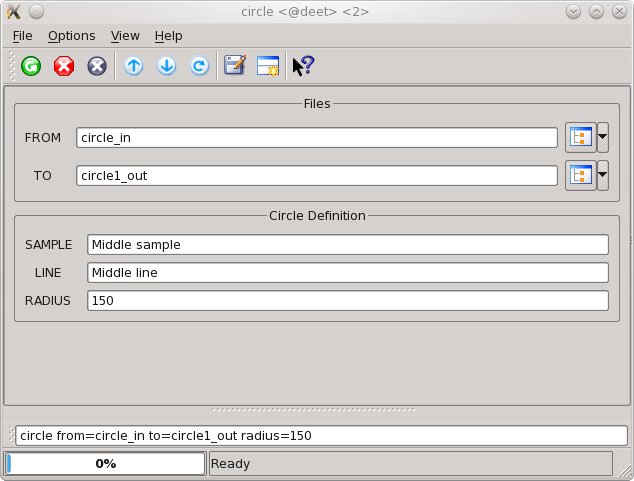 Example GUI Screenshot of GUI with parameters filled in to perform a circle operation with a radius of 200 and centered on line/sample 125/375 |