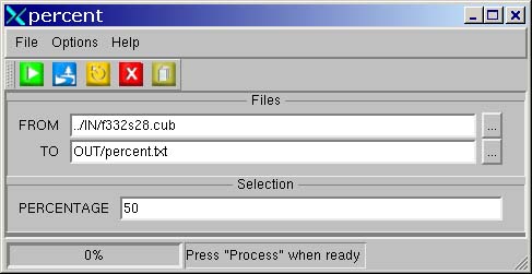 This parameter indicates the cumulative percentage to examine in the histogram. The DN value at that percentage will be output by this program. For example, PERCENTAGE=50 will return the median of the image. When entering multiple percentages, be sure they are comma delimited.
