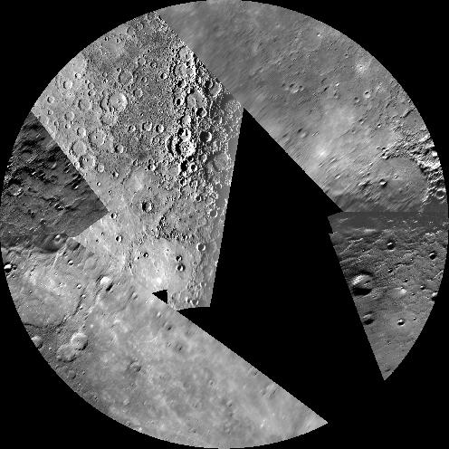 In this example the polar portion of a Messenger/Mariner10 global mosaic