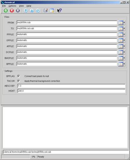 Calibrate lna3056k.cub In this example clemnircal will calibrate lna3056k.cub using the defaults. |