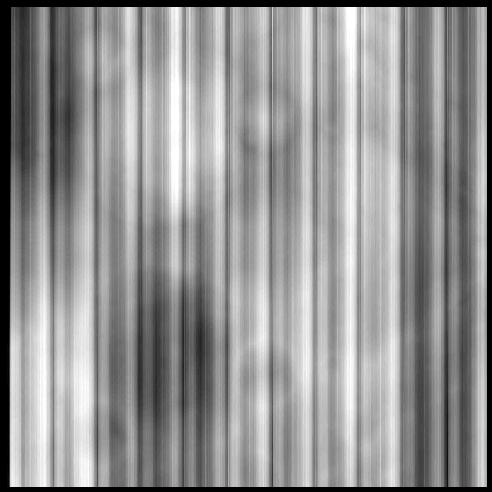 First, we apply a tall (1xNL) lowpass filter to the input image. This produces an image that is essentially a column average. The high frequency information has been suppressed and the vertical noise is left behind. Note however, the average of the lowpass filter matches the original input so we can not subtract the noise quite yet.