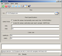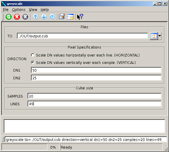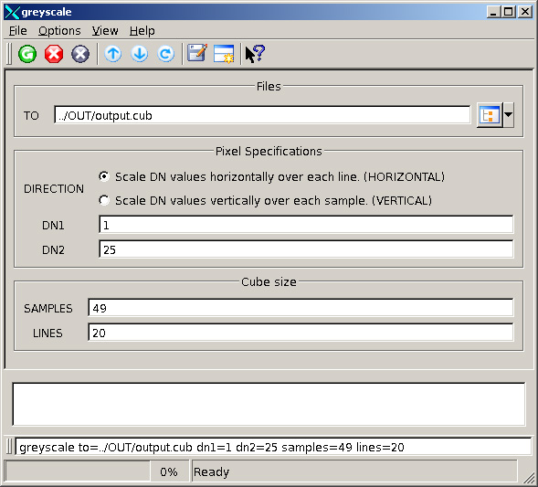 Example GUI Screenshot of GUI with parameters filled in to perform greyscale application. DIRECTION parameter HORIZONTAL is chosen as default. |