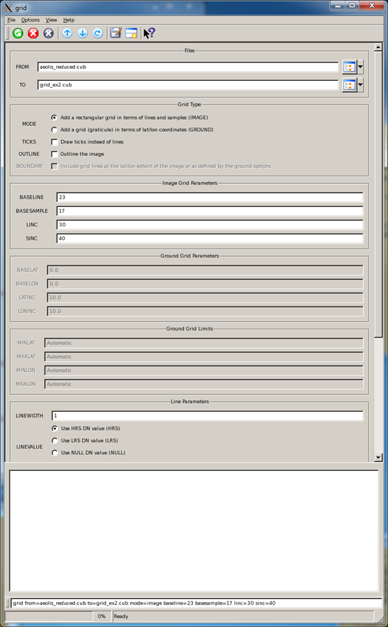 2. A simple rectangular grid based on line and sample coordinates where (MODE=IMAGE).