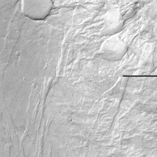 This image was imported with pds2isis and then exported with isis2std, in order to get a good idea of what the raw input image looks like.