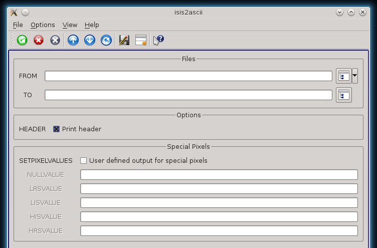 Example GUI Screenshot of GUI with parameters filled in to perform the isis2ascii application |