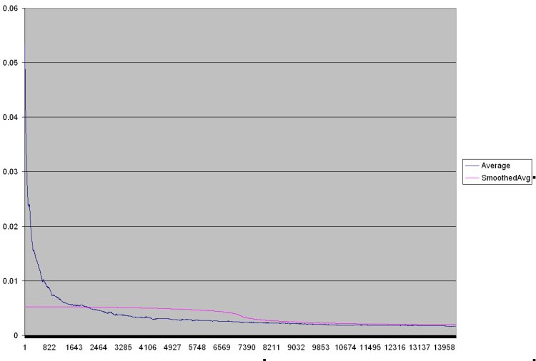 CSV This shows the graph of the averages from the CSV file zoomed into the left side. Notice the smoothed average (pink) is significantly off from the averages (blue). This tells us that the data in this region did not normalize properly. |