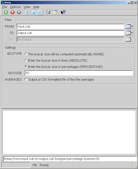 BOXSIZE This screen shot shows how to run this program using a 50% boxcar on input.cub. |