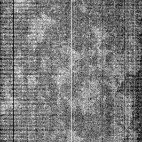 This is the input to makeflat. Notice the vertical lines persistent throughout the image and the dark area on the right-hand side.