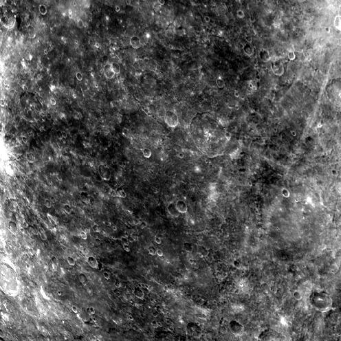 In this example, the map2cam application is used to map a base map into the same geometry as the matching Messenger level 1 image. The output file can then be used to select control points. Sometimes matching features can be found easier when features when a comparing level 1 image to another level 1 image.