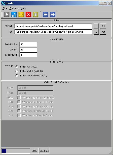 Example GUI Screenshot of the GUI set to filter all pixels for the image using a 15x15 boxcar. |