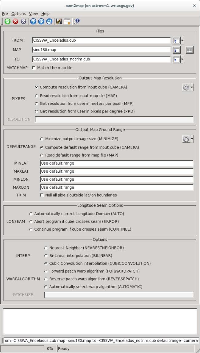 Alternatively, the map file can be an existing map projected (level2) cube. A level2 cube has PVL labels