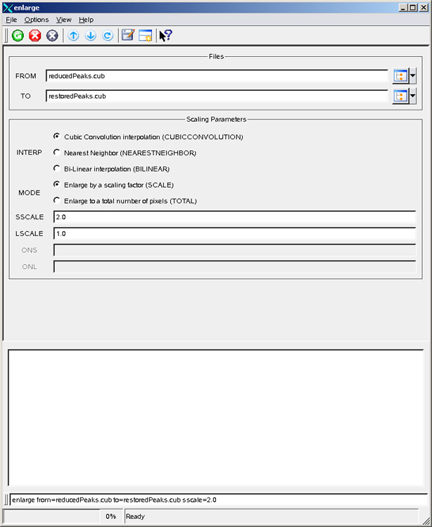 reducedPeaks.cub, will be enlarged by a factor of 2 along the sample