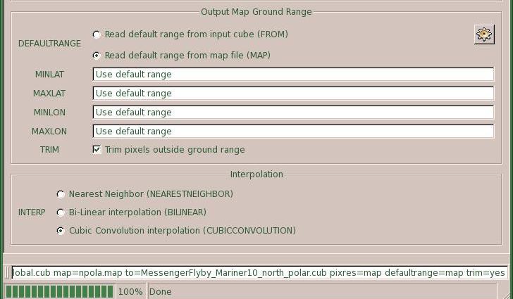 is obtained. The ground range can be obtained from the input cube or map file. Note the user can overide the default