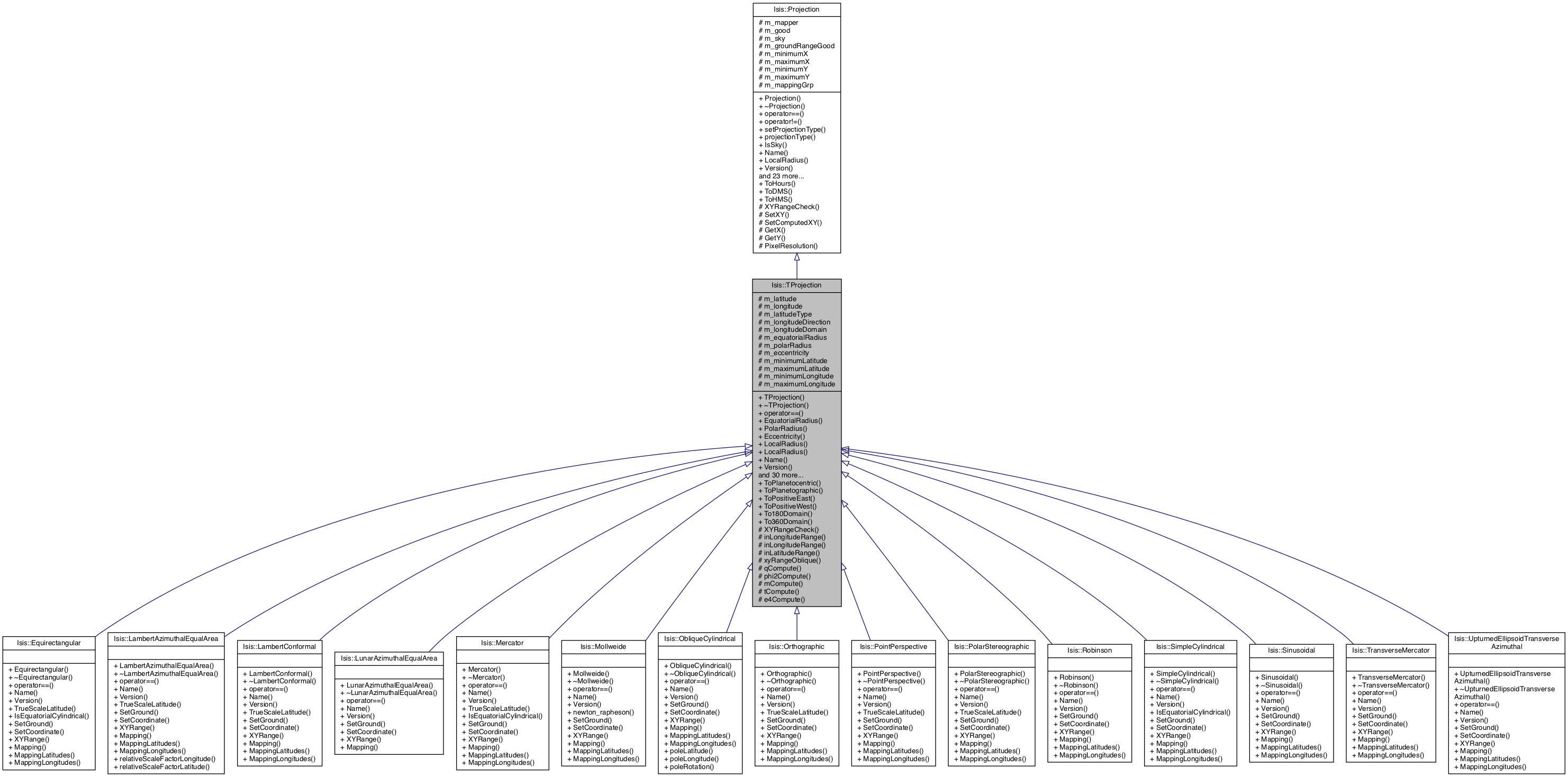 Reimplemented in Isis::Equirectangular, Isis::LambertAzimuthalEqualArea, Isis::LambertConformal, Isis::Mercator, Isis::Orthographic, Isis::PointPerspective, and Isis::PolarStereographic.