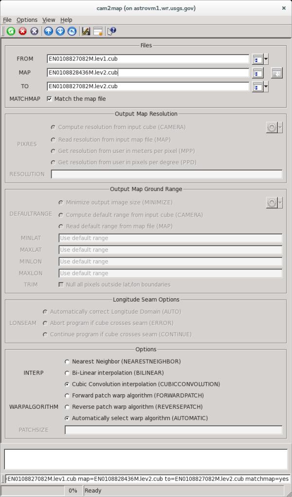 Alternatively, the map file can be an existing map projected (level2) cube. A level2 cube has PVL labels