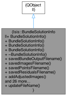 This class includes the settings used to run the bundle adjustment, the resulting statistics values, and the name of the control network used. NOTE: BundleSolutionInfo is derived from QObject as it has one slot (perhaps more signals and slots in the future? As a child of QObject it should have no copy constructor or assignment operator. See for example...