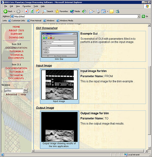 The ISIS API consisted of many hundreds of C and Fortran subroutines. The documentation for the routines was located in the source code, forcing application programmers to manually find and locate the desired function. Coupled with fact there was no table of contents or other front-end navigation ability meant developers often relied on word-of-mouth to determine existing capabilities. In the worst case, capabilities were sometimes re-coded because of lack of information.