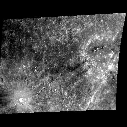 This is a Messenger narrow angle camera image previously projected into an equirectangular map.