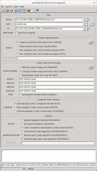 Links open in a new window.| Map file | Input map file defining the attributes of the desired output map projection. This file is in PVL format. |