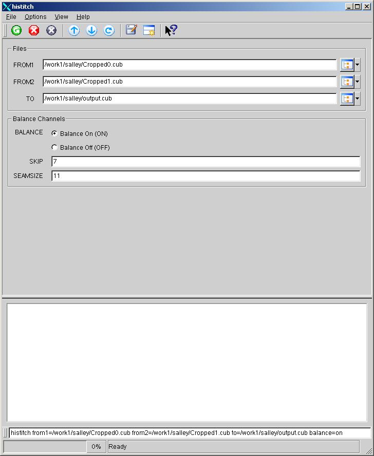 histitch from1=IN/Channel0.cub from2=IN/Channel1.cub to=OUT/output.cub balance=true skip=7 seamsize=11