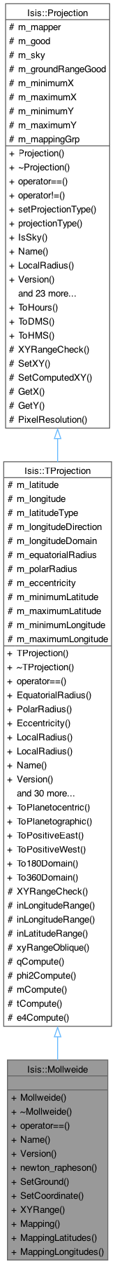 Reimplemented in Isis::Equirectangular, Isis::LambertAzimuthalEqualArea, Isis::LambertConformal, Isis::Mercator, Isis::Orthographic, Isis::PointPerspective, and Isis::PolarStereographic.