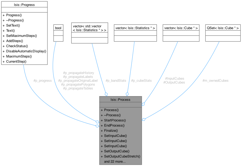 This is the core of the Isis system. Process, a very important base class is often used to derive new classes which process cubes in a systematic manner. Some of these derived classes include ProcessByLine, FilterProcess, RubberSheet, and Export. For history buffs, the Process class equates to DOCUBE in Isis 2.0 and DOIO in PICS. Essentially, this class manages much of the tedious programming work for cube i/o, user interaction, history, etc.