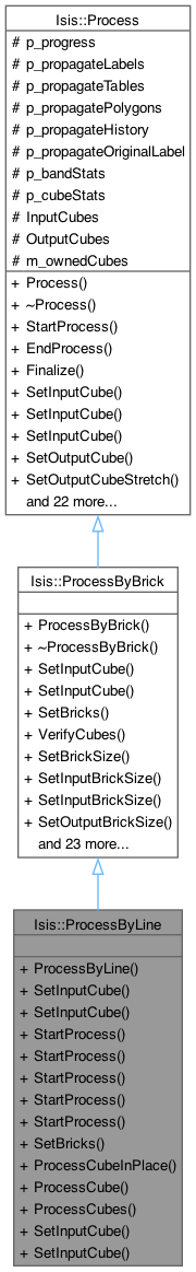 In derived classes such as ProcessByLine, the StartProcess will invoke a user-specified function for every line in a cube.