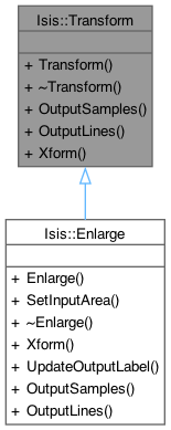 This class is used as a virtual base class for rubbersheeting (geometric warping) of image data. In Isis, rubbersheeting is performed by a transform from output space to input space, where a space could be a disk cube or an internalized memory cube. In particular, the transform must provide a method for converting output pixel locations (sample,line) to input pixel locations. A very simple example of a transform is a translation (shifting the cube left/right and up/down). More complex transforms can be created such as rotations, scaling, and converting to a map projection. The Transform class is "pure virtual" and should never be instantiated but instead used in an inheriting class. Using the translation example:
