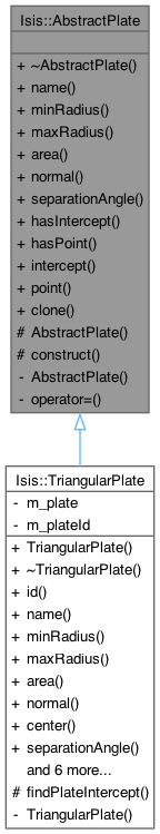 This abstract class defines the interface for triangular plate. The plate is assumed to be a set of 3 body-fixed vertex points that describe a portion of the surface digital elevation model (DEM).