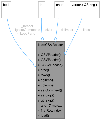 | CSVReader (const QString &csvfile, bool header=false, int skip=0, const char &delimiter=',', const bool keepEmptyParts=true, const bool ignoreComments=true) | |