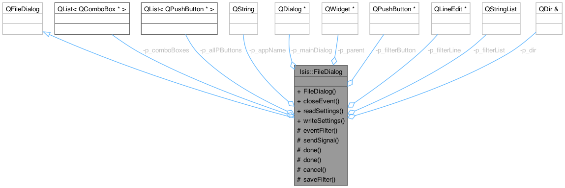 | FileDialog (QString title, QStringList &filterList, QDir &directory, QWidget *parent=0) | |