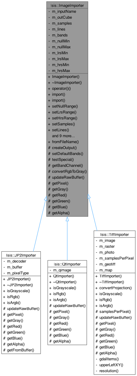 Abstract base class for a series of image importers. Each importer handles a specialized suite of standard image formats, and can be used as a black-box with the import() method, or for finer control, the importer can act as a functor in a ProcessByLine routine.