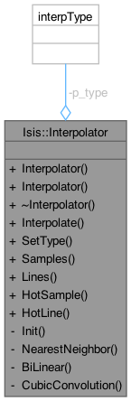 This class is used for interpolating buffers of pixel data. It is usually associated with spacial translation, rotations and scaling in geometric warping algorithums (i.e., rubber sheeting). When special-pixel values are found in the data buffer the current interpolator is abandonded and the next lower interpolator is used instead (i.e.; if Cubic-convolution can not be performed then a bi-linear is used and if the bi-linear can not be performed then nearest-neighbor will be used.