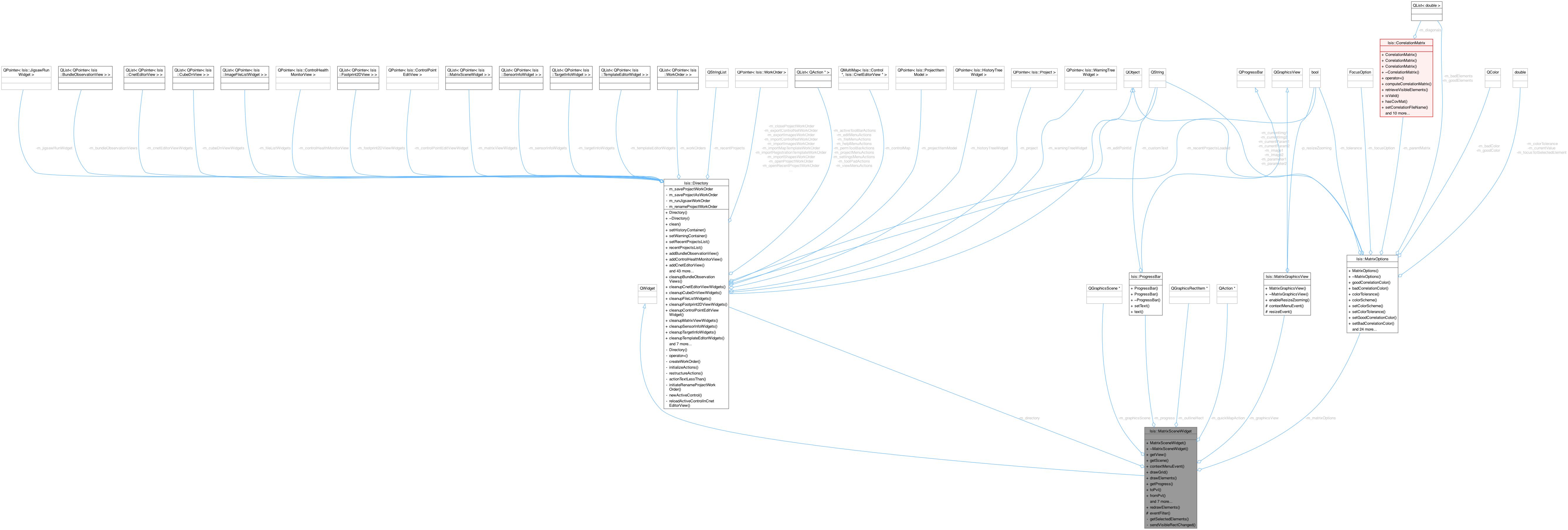 This widget is a self-contained view of the correlation matrix resulting from a bundle adjust. It uses Qt's graphics scene/view framework. This widget holds the graphics scene, view, and items. It will also hold the options dialog for the matrix.
