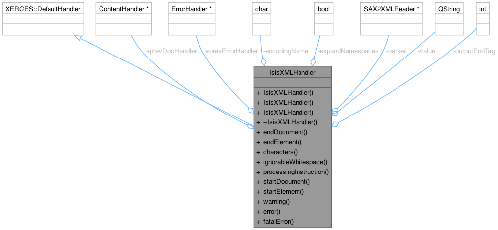 | IsisXMLHandler (char *PencodingName, bool &PexpandNamespaces, XERCES::SAX2XMLReader *&Pparser) | |
