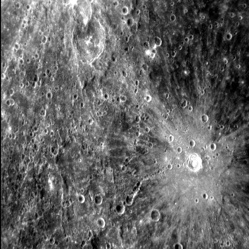 This is a Messenger narrow angle camera image previously projected into an equirectangular map.