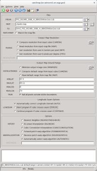 Links open in a new window.| Map file | Input map file defining the attributes of the desired output map projection. This file is in PVL format. |