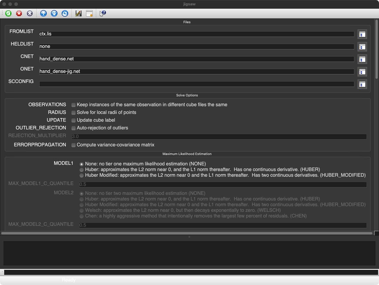 The jigsaw application performs a photogrammetric bundle adjustment on a group of