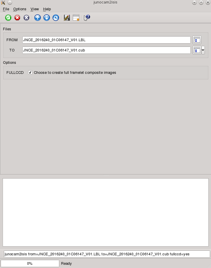 Crop GUIThis is a screenshot of junocam2isis. The GUI shows the parameters used to ingest a JunoCam image into separate cubes for each frame.