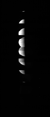 The full JunoCam image with all of the image data for each filter and frame adjacent. The top of the image is the first frame. The filters in descending order are BLUE, GREEN, and RED. This image has been reduced by a factor of 4. The original image is 1648x3840.
