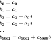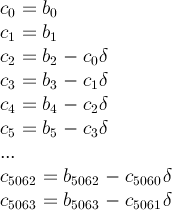 So, we have the line of the actual image , which includes the echo, and we want to recover the ideal image line without the echo. To avoid confusion, let's call this new calculated value where is an approximation of the original dependent on the accuracy of . It's trivial for line 0. Then, for line 2 we just substitute the solution from line 0 for and solve for . Likewise, for line 4 substitute for using line 2 and solve for , etc. The result is