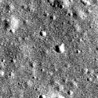This is a small area of the output to lronacecho, a calibrated LRO NACL image with echo effects removed. The blurring from the echo effect has been removed.