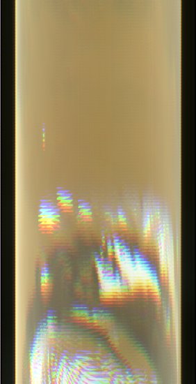 Output Image Without FLIPSince this particular input image had a RED, GREEN, and ORANGE filter, it was possible to display the image in color. To give a better picture of the output, because MARCI takes long strips of data, this image was cropped. In order to show the same feature as the flipped image, the crop was at line 5800 to a height of 1000 pixels. This image was created with FLIP set to NO in marci2isis, because AUTO flipped the data. When you look closely, especially compared to the flipped data, the features in this data are distorted.