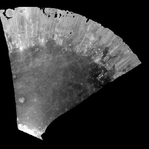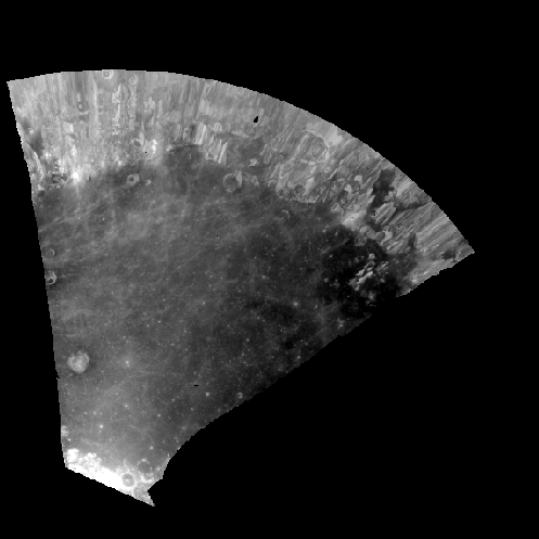 The untrimmed cube. This is an oblique view of the moon acquired by the Apollo Metric camera.