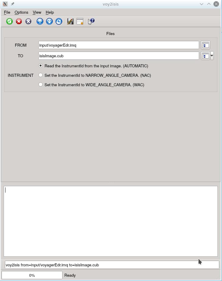 This program will take in raw image files from the Voyager spacecraft mission and import them into Isis formatted cubes. The input files are compressed Planetary Data System (PDS) formatted Voyager Experiment Data Record (EDR) files. The output cube will contain tranlated labels in pvl format with instrument, archive, bandbin, kernel, and nominal reseau information.