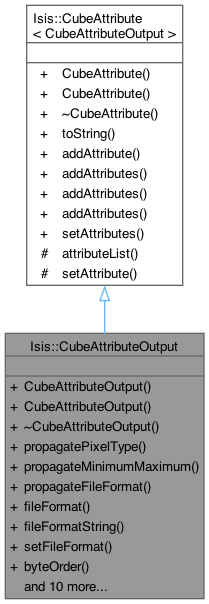 This class provides parsing and manipulation of attributes associated with output cube filenames. Output cube filenames can have an attributes of "minimum:maximum", "pixel type", "file format", "byte order", and "label placement"