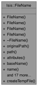This class is used for manipulating filenames. It allows access to the path, extension, base name and Isis attributes. A standard Isis filename takes the form of