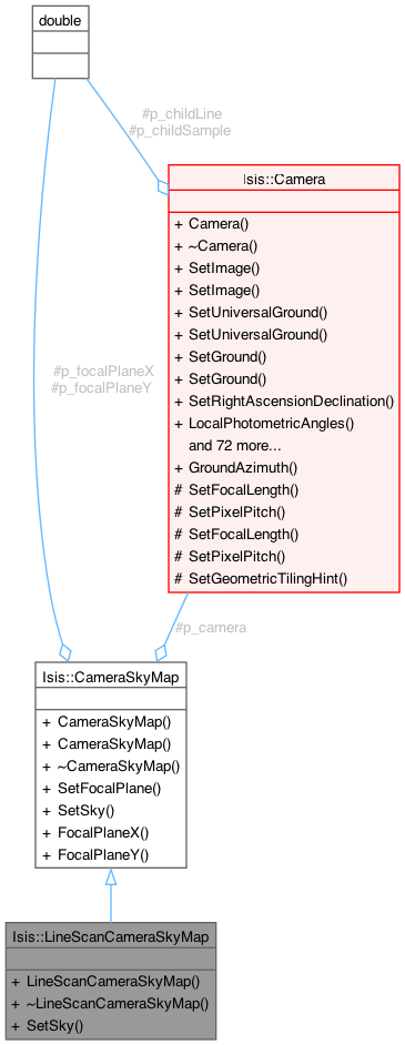 This class is used to convert between undistorted focal plane coordinates (x/y) in millimeters and sky (ra/dec). This class handles the case of line scan cameras.