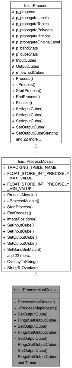Unlike other Isis process objects, no application . function will be called. The processing is handled entirely within the mosaic object. The input cube must be pixel aligned with the output cube before mosaiking. If the input cube does not overlay any of the output cube, no processing takes place. There are 3 priorities input, mosaic and band. Has the ability to track the origin of the mosaic if the flag is set. Some conditions apply like tracking turned off for multiband input with input or mosaic priority.
