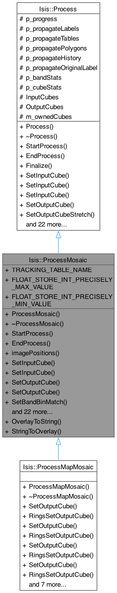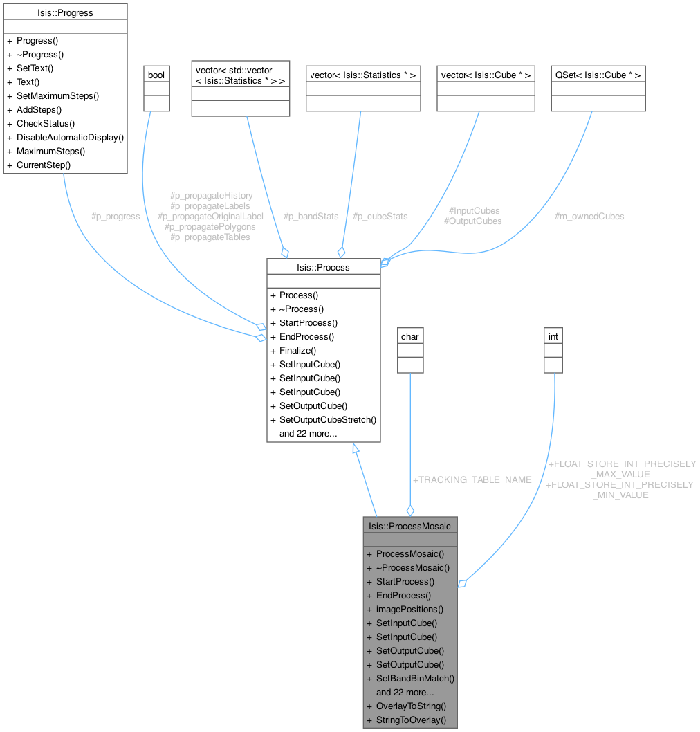 Unlike other Isis process objects, no application . function will be called. The processing is handled entirely within the mosaic object. The input cube must be pixel aligned with the output cube before mosaiking. If the input cube does not overlay any of the output cube, no processing takes place. There are 3 priorities input, mosaic and band. Has the ability to track the origin of the mosaic if the flag is set. Some conditions apply like tracking turned off for multiband input with input or mosaic priority.